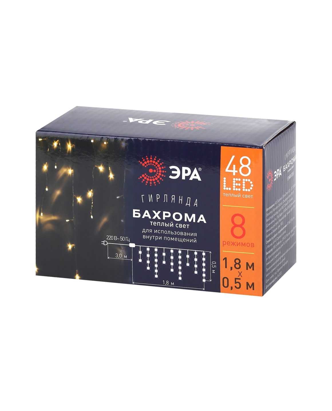 ENIB-01B ЭРА Гирлянда LED Бахрома 1,8 м*0,5 теплый свет 8 режимов 220V, IP20 Б0041899